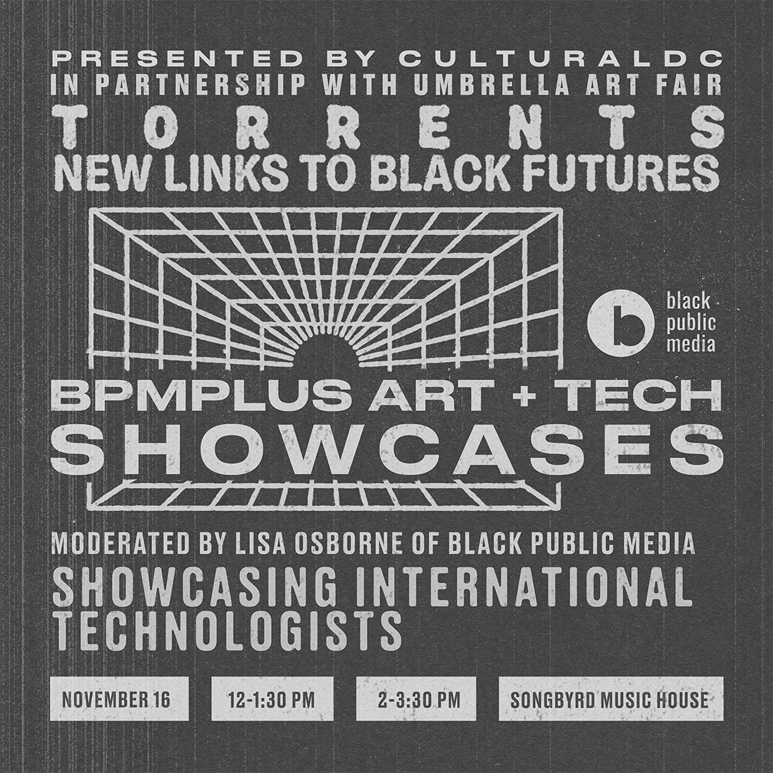 Black Public Media presents BPMplus Art & Tech Showcase at TORRENTS held at the Eaton Hotel Cinema in Washington D.C on Saturday, November 11 from 3-5 pm (EST). Join us for impactful presentations from artists, filmmakers, and creative technologists with...